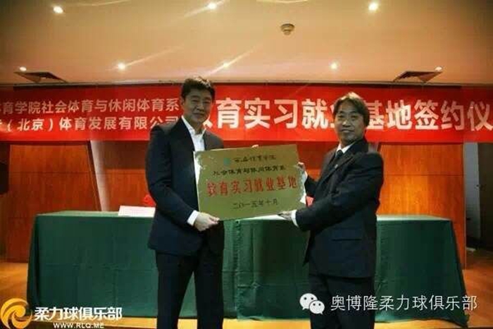 随后,郑智伟董事长与郑文海主任代表双方签订就业实习基地合作协议书,郑文海主任向奥博隆(北京)体育发展有限公司郑智伟董事长授牌,双方领导合影留念。签约仪式后,双方还对今后进一步的合作方式、形式进行了商谈并达成了多项合作意向。