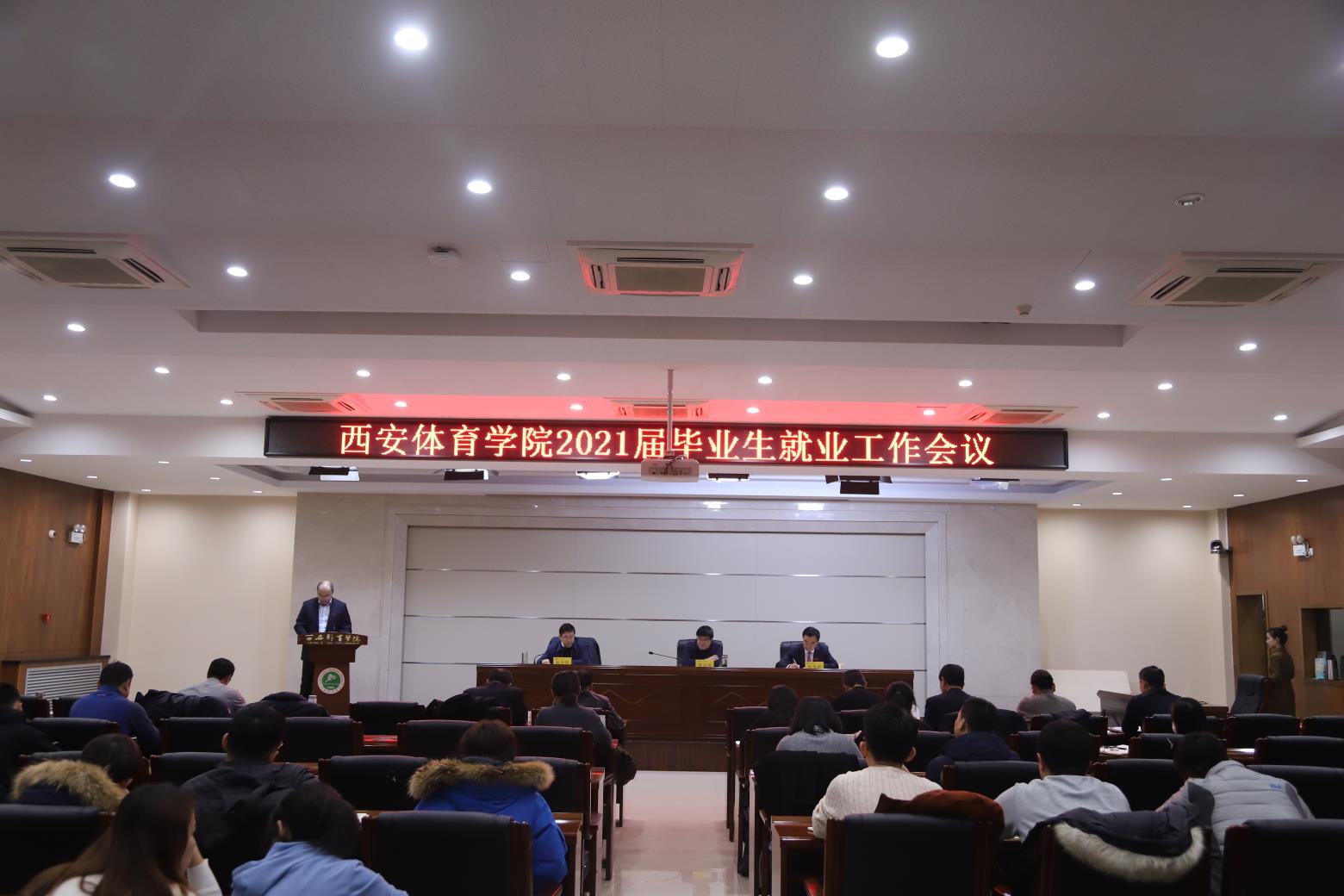 会上,黄道峻、朱元利为获得2020届毕业生就业工作的先进集体、先进个人颁发奖牌和证书,朱元利宣读了《西安体育学院2020年毕业生就业工作表彰决定》。学工部长王志刚通报了我校2020届毕业生就业工作总体情况、存在的不足、下一阶段工作思路与目标。各二级学院主要负责人总结2020届毕业生就业工作并就今后工作设想、措施与建议进行交流,进一步明确2021届毕业生就业工作目标和任务。
