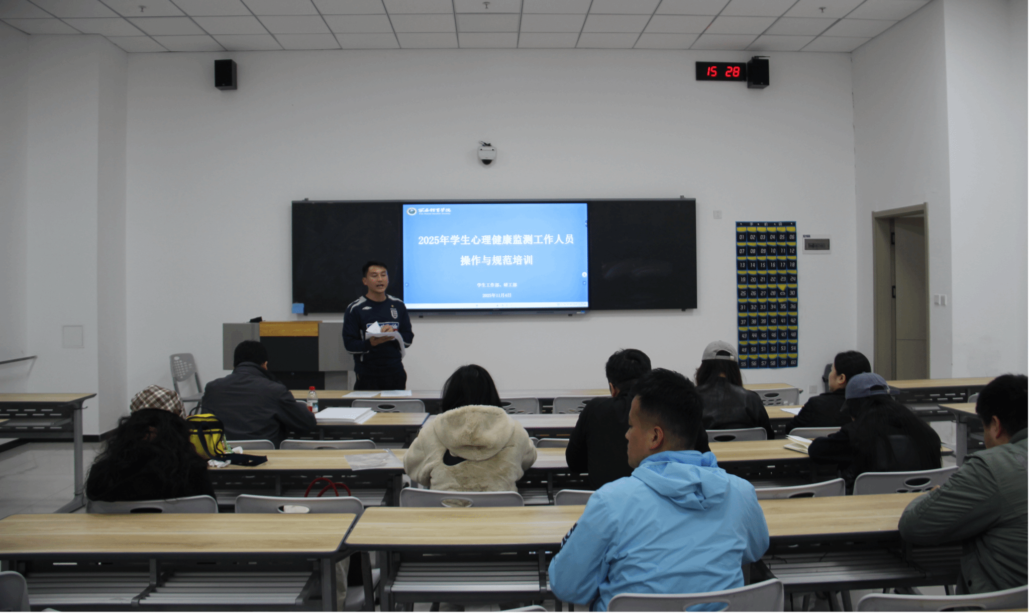 学校党委高度重视此次监测工作,成立以党委副书记马海涛为组长、学工部部长马国华为副组长的专项工作组,严格对标《2025年全国学生心理健康监测高教阶段组织工作手册》要求,细化实施方案。前期,工作小组认真参加全国监测启动培训,精准填报学校施测环境信息与师生信息,制订校级实施方案。组织参测工作人员开展现场操作与规范培训,重点学习测试操作流程、应急处置预案及保密要求,为监测工作奠定坚实基础。