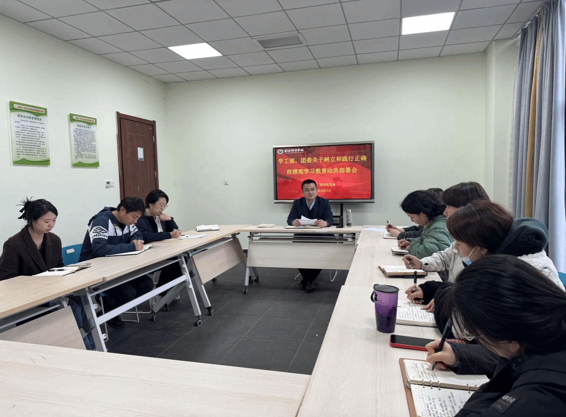 为深入学习贯彻习近平总书记关于树立和践行正确政绩观的重要论述,全面落实党中央及学校党委工作部署,切实把思想和行动统一到学习教育要求上来,3月12日下午,学工部、团委党支部召开树立和践行正确政绩观学习教育动员部署会。学工部、团委全体干部职工参加会议,会议由马国华同志主持。