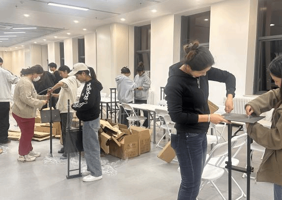 筹备阶段,志愿者们利用课余时间完成场地布置。男生女生分工协作,搬运桌椅、悬挂横幅、调试设备,仅用两小时就将杂乱的场地整理得井井有条。
