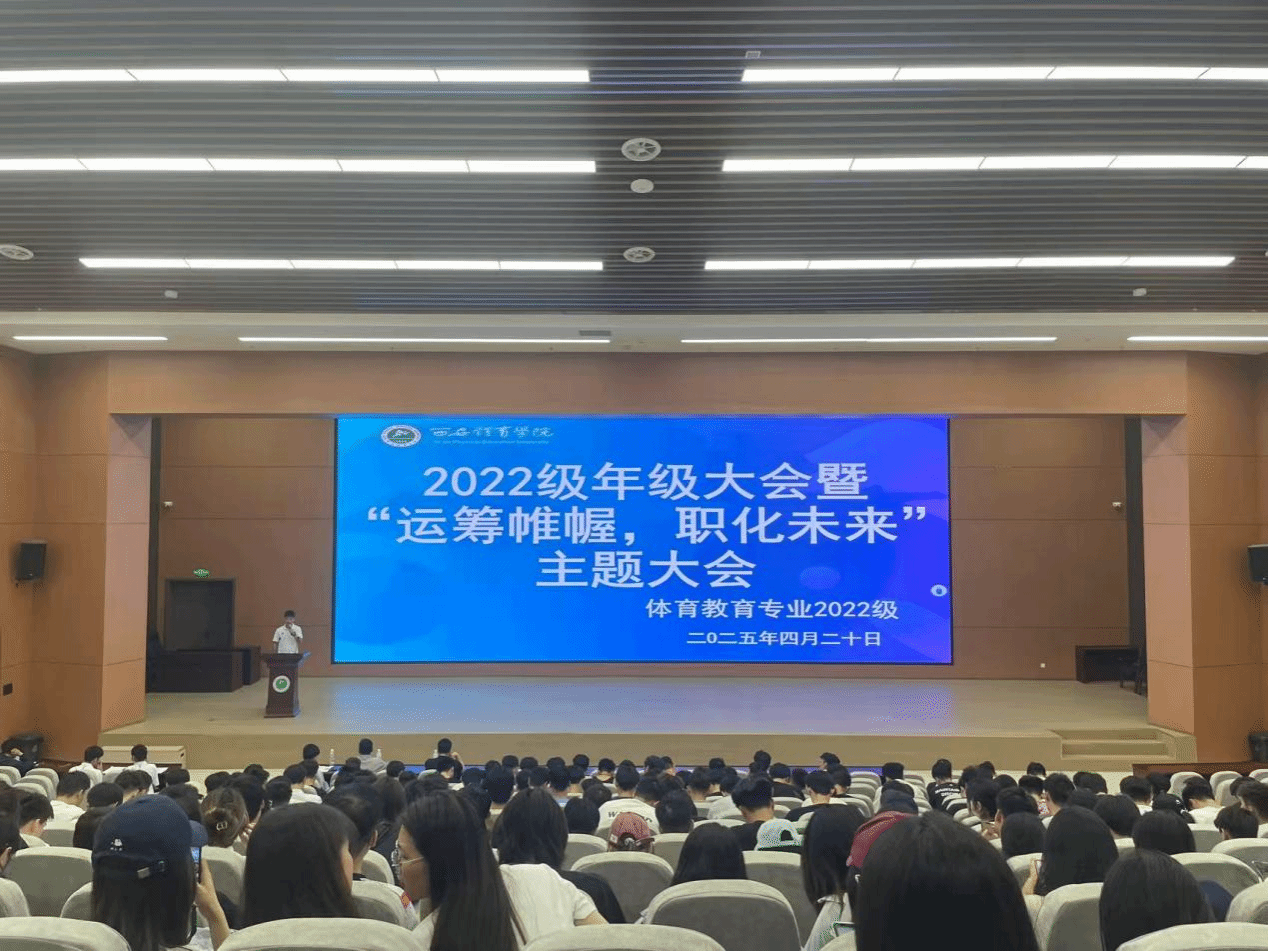 为凝聚力量,展望未来,助力学生在学业以及将来的就业创业道路上行稳致远,聚焦学生就业问题,找寻适合自身发展的职业路线,4月20日晚,体育教育学院2022级在西安体育学院鄠邑校区教学楼报告厅举行了年级大会暨“运筹帷幄,职化未来”主题大会,参加此次会议的有西安体育学院学工部副部长于昕,体育教育学院2022级年级主任宋昂,辅导员李西及2022级全体学生,会议由学生高敏主持。