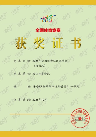此次获奖是西安体育学院排舞队继陕西省排舞公开赛后取得的又一佳绩,充分体现了学校在体艺融合育人方面的扎实成效,也是体育教育训练学院践行“以赛育人”理念,将竞技实践融入专业教学、提升学生综合能力的生动写照。队员们表示,将以此次荣誉为新起点,积极推动排舞运动在校园内的普及与发展,努力成长为德智体美劳全面发展的高素质体育人才,为陕西省乃至全国排舞事业的高质量发展注入新的活力。
