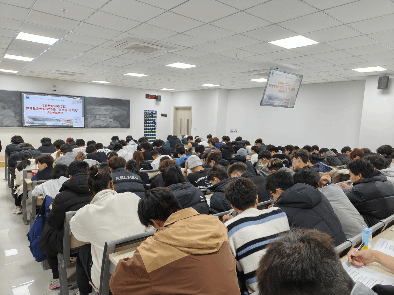 为帮助2025级新生更好的适应大学生活,增强规则意识与纪律观念,夯实学风建设基础,11月20日晚,体育教育专业2025级全体新生顺利举行“正学风,树新风”主题《学生手册》考试。本次考试坚持“以考促学、以学促行”的理念,将制度学习与成长教育紧密结合,切实引导新生扣好大学生涯的“第一粒扣子”。