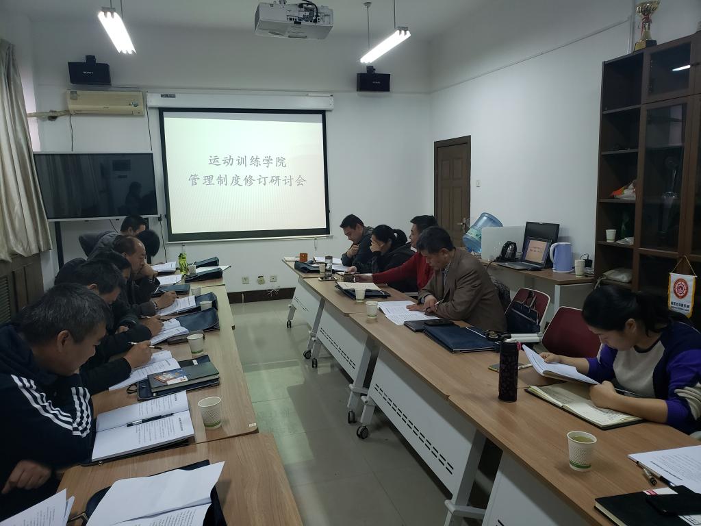 为认真学习贯彻党的十九届四中全会精神,全面落实《西安体育学院全面推进依法治校工作的实施意见》的文件精神,围绕学校第六次党代会决策部署,加快推进运动训练学院治理体系和治理能力高效化、制度化、规范化、精细化、科学化进程,进一步加强运动训练学院制度建设和创新,完善内部治理,全面推进依法治校,结合学院发展实际,2019年12月26日下午14:30分,在运动训练学院6楼会议室召开了运行训练学院管理制度修订研讨会。运动训练学院党政领导、教授、教研室主任、副主任、书记、年级办主任、办公室工作人员参加了此次会议。会议由运动训练学院院长武洛生主持。