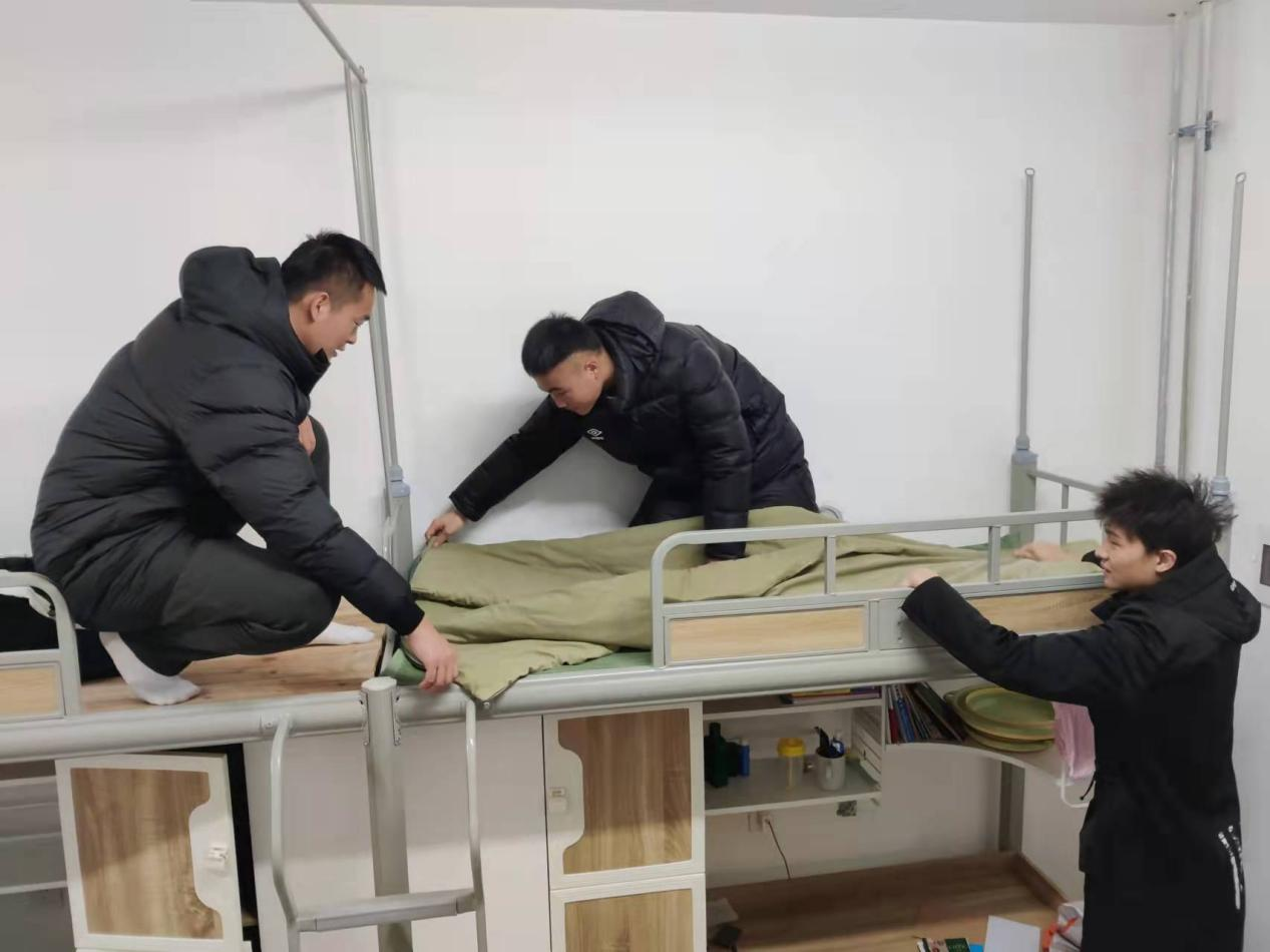 面对突如其来的疫情,为了落实我校疫情防控工作要求,协助学院维持公寓秩序,示范引领公寓内务整理,运动训练学院还成立了以退伍复学学生为主体的退役军人志愿服务队。退役军人服务队每晚协助辅导员对宿舍环境卫生进行检查,指导学生宿舍的内务。