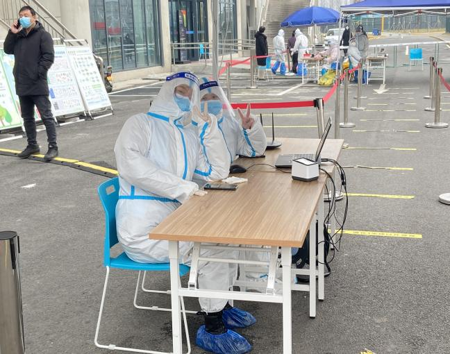 志愿者们在核酸检测现场忙碌