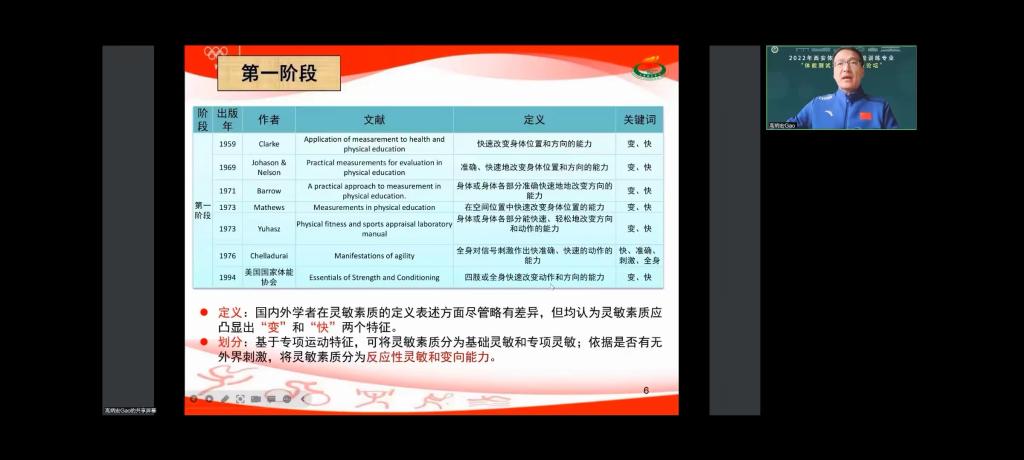 首先,上海体育学院体育教育学院院长,亚太运动训练科学委员会执委,中国体育科学学会体能训练分会副主任委员,高炳宏教授通过《青少年运动员灵敏素质测试与评估》的报告,从四个方面与大家探讨了关于灵敏素质的发展问题,让大家更深刻的理解了包括对灵敏的概念、结构、分类、影响因素以及功能的认识,便于我们更好的精准进行灵敏方面的测试与评估,能更好的服务我们的运动队。同时,高教授也从测试的方法和注意事项给大家非常明确的指出了灵敏素质到底怎么测,测的过程当中还要注意什么样的顺序,还有长期的跟踪。以便能够更好更精准的把握运动员的长期灵敏素质这个发展脉络。