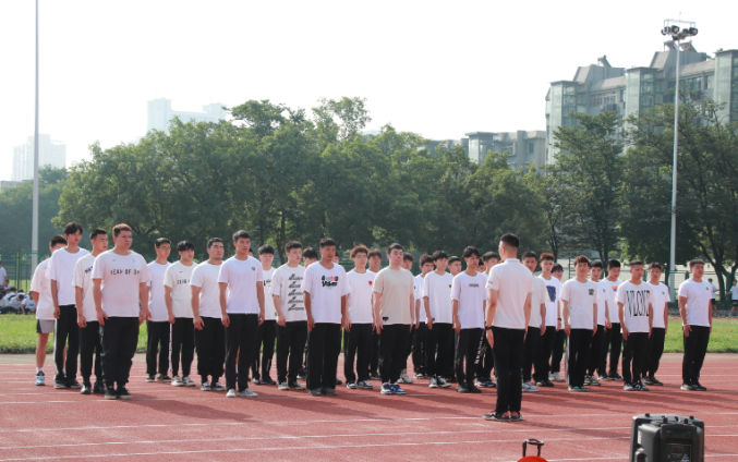 庄严的国歌声拉开了本次队列汇操的序幕。会议伊始,主持人介绍与会领导、裁判、办公室人员及各班指导教师,党委书记王鑫宣布汇操表演正式开始。