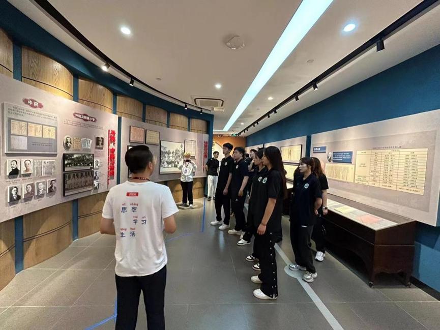 随后,两校学生共同进行红色文化交流活动。彭康书院讲解员带领实验班学生参观并讲解了西迁历史博物馆,同学们一起深入学习了西迁精神。接着参观交大校园,领略交大校园文化。在随后的交流座谈中,实验班同学们结合自身专项向交大学生展现了体育魅力,传播了体育精神。