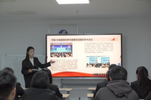 李彤同学领学“西安体育学院建校七十周年‘两会一活动’”。学校成功举办建校70周年高质量发展大会以及校庆活动、承办第二届中国-东盟国民体质与健康促进国际学术会议。呼吁同学们在活动中感悟、发扬西体精神,并以此激励自己砥砺前行,共创西体新的未来。
