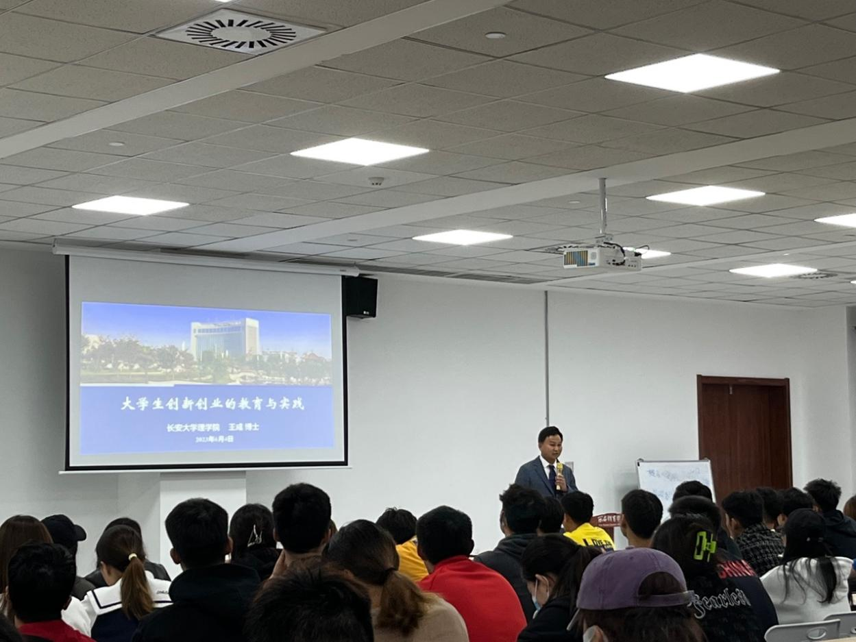 王成博士就创业创新的目的,双创比赛的介绍和项目意义展开讲授。