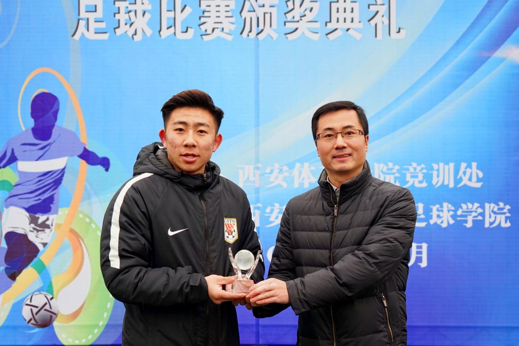 足球教研室教师刘锦瑜为“最佳裁判员”颁奖