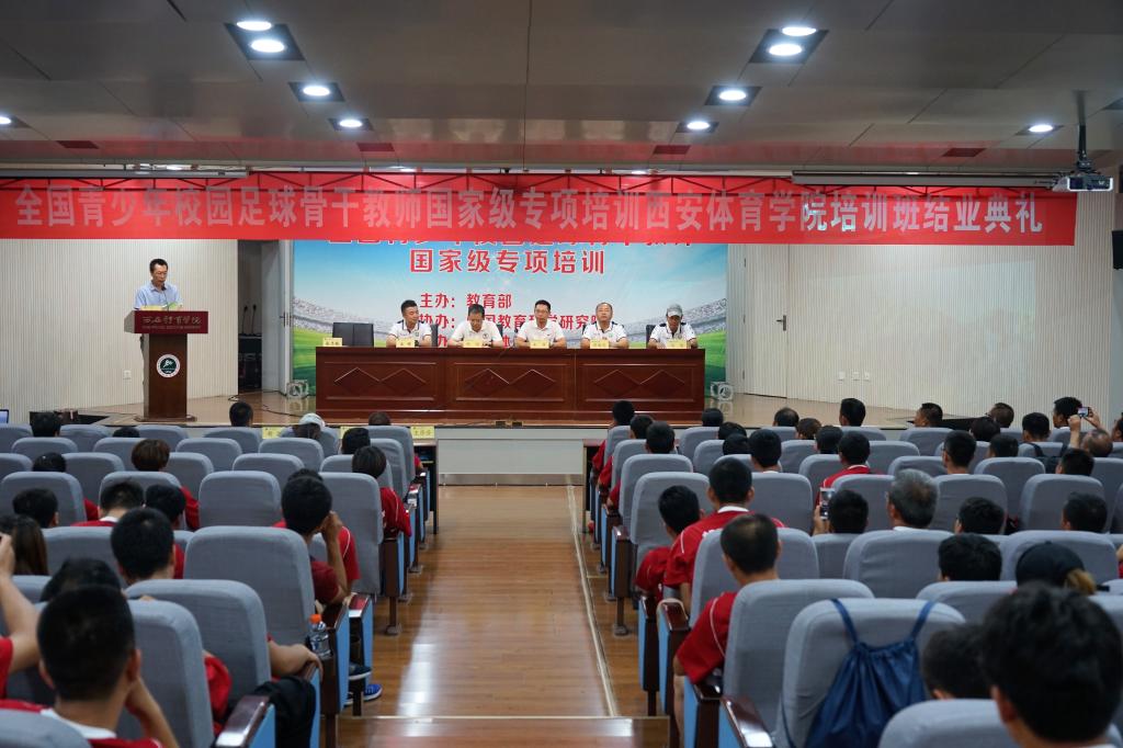 7月15日,为期9天的2018年全国青少年校园足球骨干师资国家级专项培训西安体育学院培训班顺利结束。足球学院院长朱军、首席专家杨钢、足球教研室主任席海龙、副主任马俊,以及多位足球教研室教师参加了结业典礼。与会领导分别为此次培训班优秀学员、优秀班干部颁发了证书并合影留念。