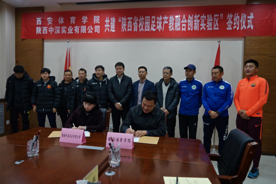 2018年11月30日,西安体育学院与陕西中深实业有限公司共建“陕西省校园足球产教融合创新实验区”签约仪式在西安体育学院举行。西安体育学院副院长陈彦、陕西中深实业有限公司常务副总经理王鑫、西安体育学院足球学院和陕西中深实业有限公司所属西安启拓足球俱乐部代表参加。