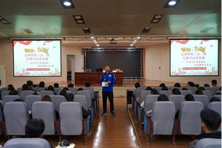 在足球学院深入开展“不忘初心、牢记使命”主题教育之际,为更好地促进学生全面和个性化发展,加强我院学生人文素养、政治思想、人生观价值观教育,提升学生学业体验与成长获得感,足球学院党政班子高度重视对学生的学业指导工作。2019年10月23日晚,足球学院在教学一楼报告厅举办学生学业指导教授大讲堂活动。第一期授课对象为我院大一新生,主讲教师为足球学院副院长席海龙教授、三级教授杨钢。