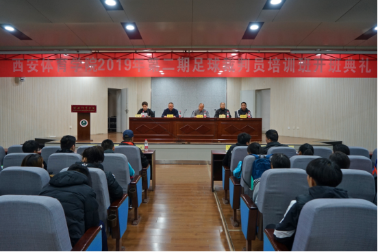 2019年11月20日,西安体育学院足球学院2019年第二期中国足协裁判员培训班在西安体育学院举办了开班典礼。陕西省足球运动管理中心主任许志勇,陕西省足协竞赛部主任王汇杨,西安体育学院竞赛训练处副处长杨中河,西安体育学院足球学院副院长席海龙,西安体育学院裁判委员会主任刘锦瑜,足球教研室副主任马俊,国家级足球裁判王洪武,孙航等出席了本次典礼。典礼由足球学院交流中心主任张芬老师主持,席海龙与许志勇分别发表了讲话。参训学员代表周萌萌做了现场发言.