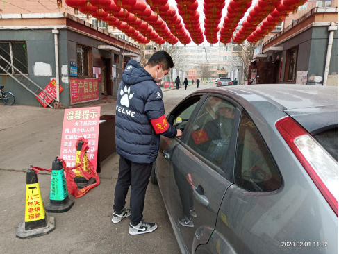 足球学院2019级1班张书豪,2月1日开始,在内蒙古自治区包头市昆都仑区团结街道办事处辖区担任疫情防控志愿者,主要负责每日出入居民区的人员、车辆登记检查和体温检测,地面消毒等工作。