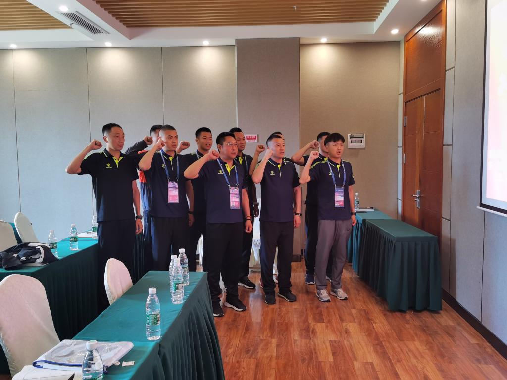 为更好的发挥党员先锋模范作用,泸西赛区裁判组成立临时党支部,由刘锦瑜担任临时党支部负责人。临时党支部严格执行“三会一课”规定,组织党员进行政治理论学习,5月13日,支部开展“运筹帷幄党指挥,群雄逐鹿绿茵场”主题党日活动,全体党员重温入党誓词。