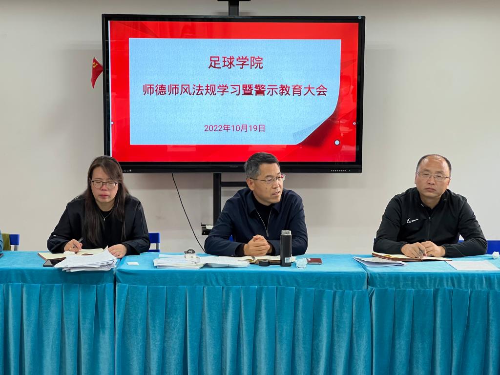 学院其他与会教职工紧紧围绕法规学习内容,结合自身工作,谈学习体会,一致认为《新时代高校教师职业行为十项准则》是我们的职业行为准则,学习师德警示案例,坚守师德底线,以高度的责任心和神圣的使命感主动融入到教书育人中,始终坚守立德树人的根本任务,牢记“为党育人、为国育才”的初心使命,做到知与行相结合,自律与他律相结合,继续传承足球人的精神,在学院的教育教学、科学研究、课程建设、人才培养等方面努力工作。