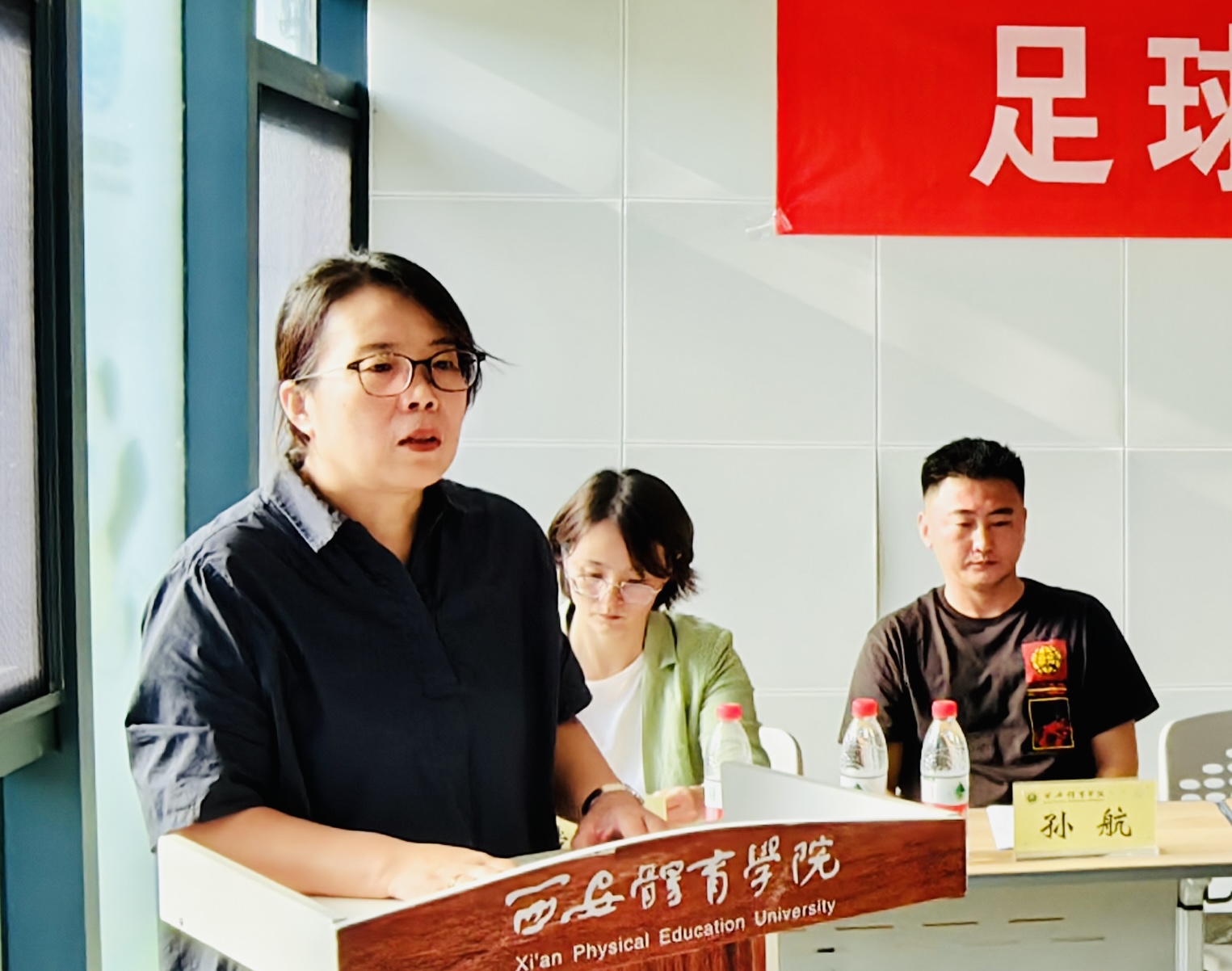 院长席海龙借用西安交通大学校长王树国在西安交大2023级本科生开学典礼上的讲话中提到的大学生活要完成“夯实知识基础、提升创新能力、培养坚韧不拔的毅力”三项任务,同我院人才培养目标相结合进行解读,鼓励新生坚持足球梦想,把家国情怀融入到不懈奋斗之中。