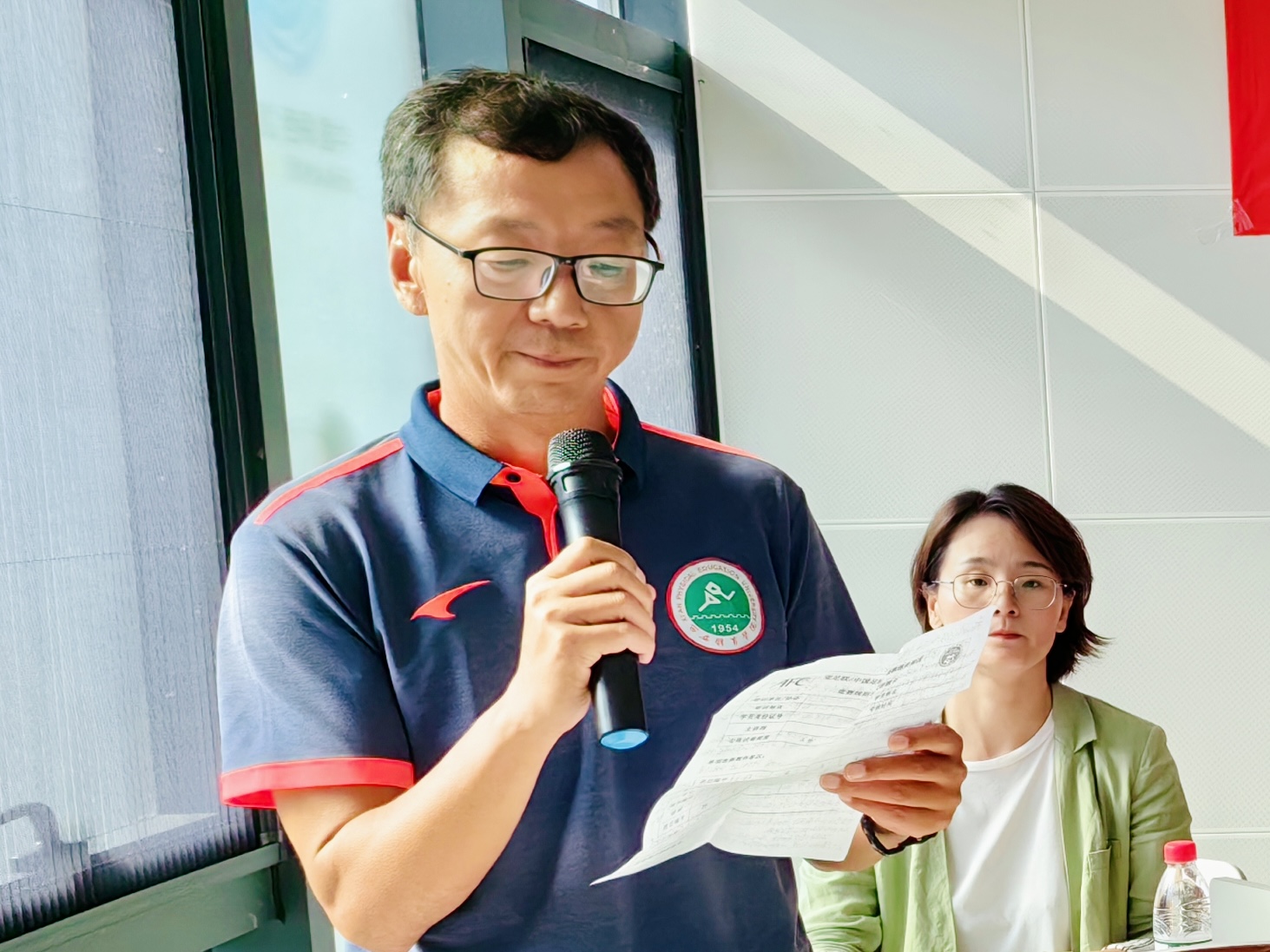 最后,与会教师为新生代表佩戴西安体育学院校徽,希望全体足院学生秉承“严谨 创新 团结 拼搏”的校训,争做新时代西体人。