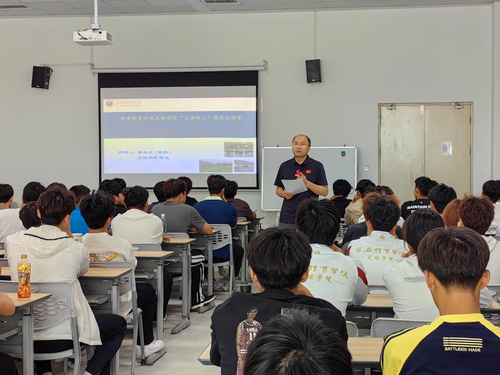 为全面贯彻落实立德树人根本任务,进一步抓实抓好青年学生的思想政治教育,5月11日,足球学院院长席海龙在鄠邑校区综合馆140教室作了题为《成就足球梦想,谱写青春华章》思政大讲堂,足球学院2023级全体学生参加。