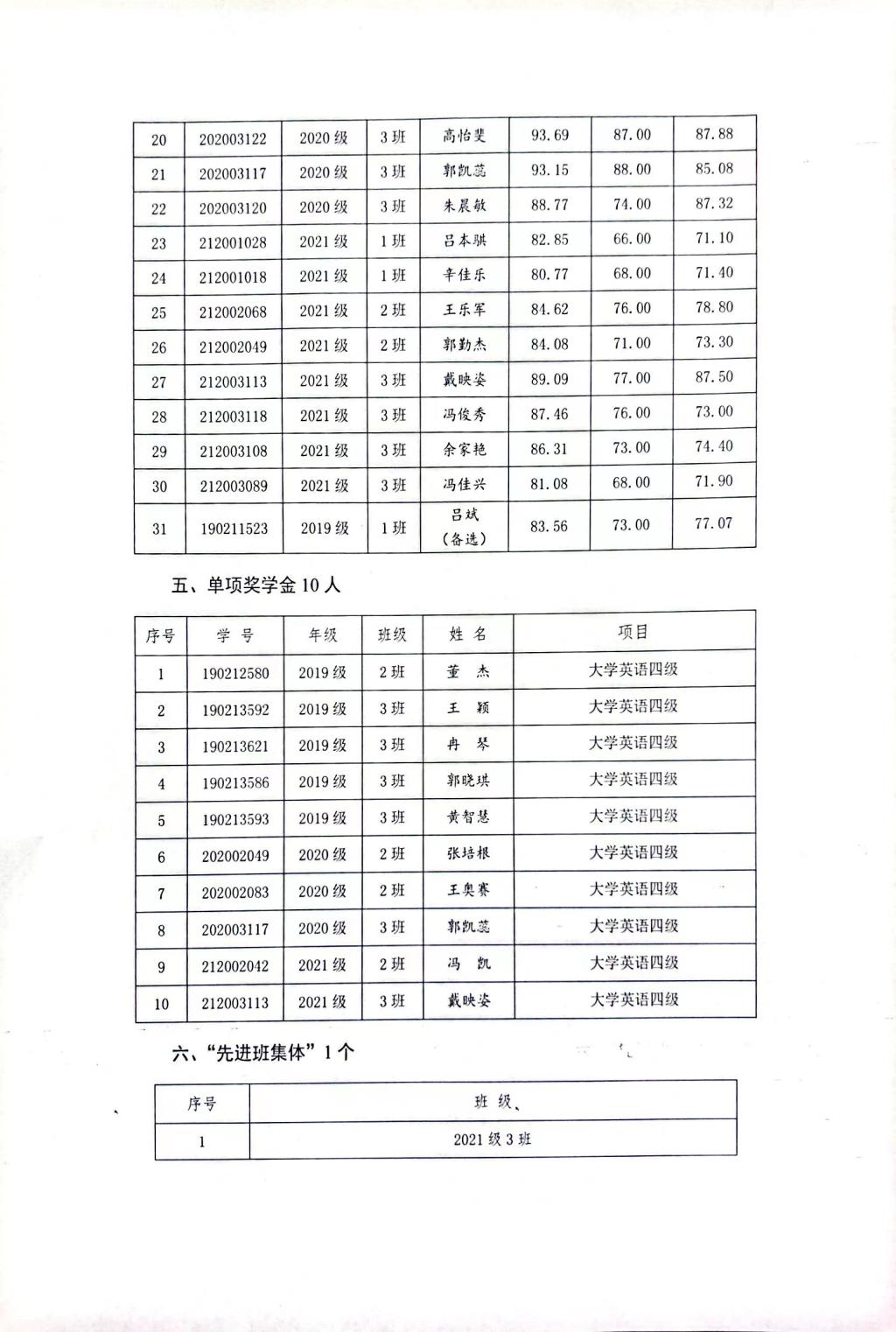 足球学院2021-2022学年先进集体和先进个人公示名单